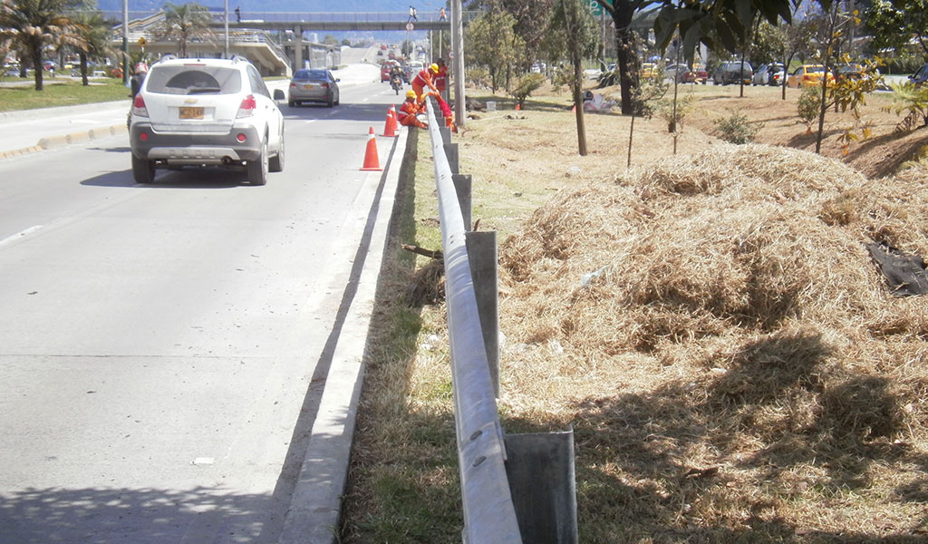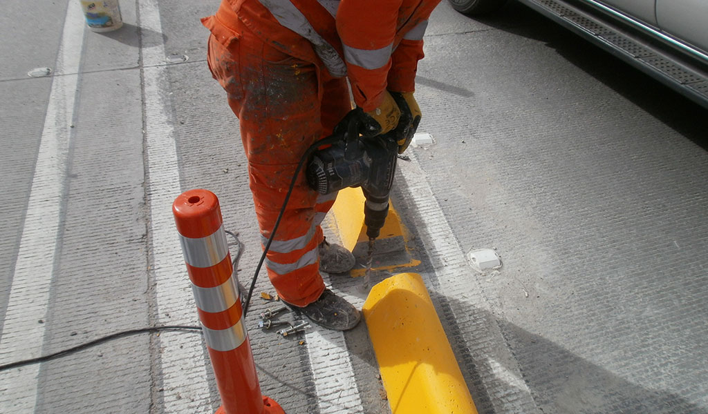 Suministro e instalación de tachon vial y tachon vial tipo Transmilenio, suministro e instalación de hitos flexibles, suministro e instalación de tacha reflectiva bidireccional e instalación de 4500 metros lineales de defensa metalica para vias.